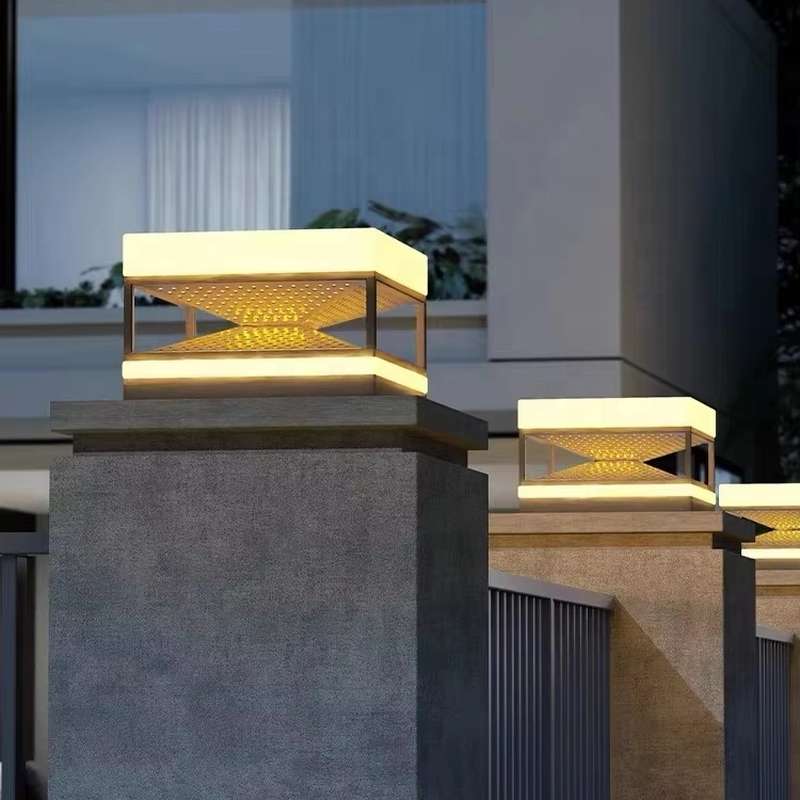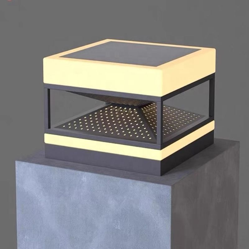 Đèn được thiết kế dạng hộp vuông, cấu trúc rỗng tạo cảm giác nhẹ nhàng, thoáng đãng nhưng vẫn chắc chắn. Phần tán sáng được bố trí ở cả mặt trên và dưới, mang lại hiệu ứng ánh sáng mềm mại, không chói lóa, đồng thời làm nổi bật kiến trúc cổng hoặc hàng rào vào ban đêm.