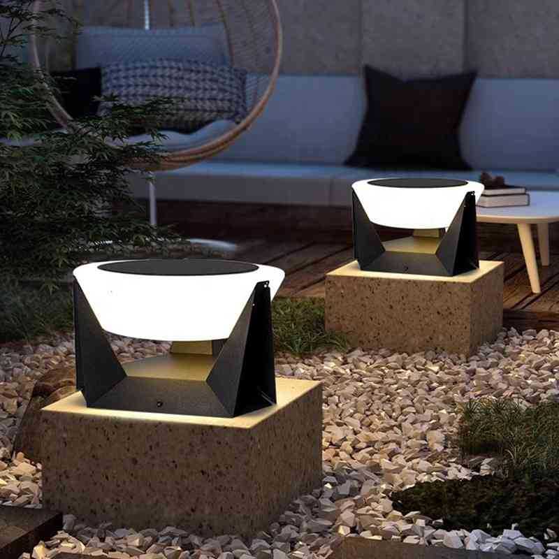 Đèn được thiết kế với hình dáng trụ vuông vững chắc, phối hợp khéo léo giữa ánh sáng vàng ấm và cấu trúc khung nhôm đen mạnh mẽ. Mặt trên là tấm pin năng lượng Mặt Trời tích hợp, giúp tự động sạc ban ngày và chiếu sáng vào ban đêm mà không cần điện lưới.